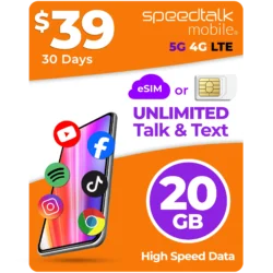$39 A Month Unlimited Talk, Text Phone Plan With 20GB Data SIM Card – SpeedTalk Mobile®