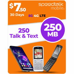 $7.50 A Month 250 Minutes 250 Text Phone Plan With 250MB Data SIM Card – SpeedTalk Mobile®
